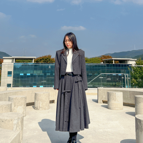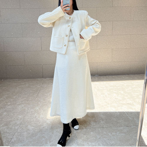 - 3온스 울60 트위드 셋업 아이보리 블랙