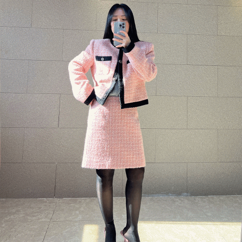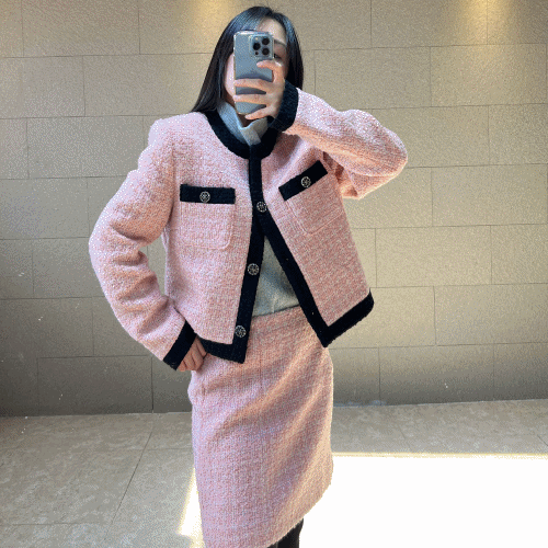 - 울 부클 브러쉬 자켓 핑크 아이보리