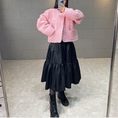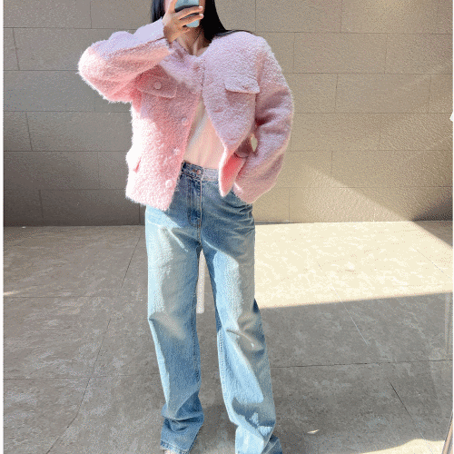 - 울 모헤어 브러쉬 자켓 핑크 민트