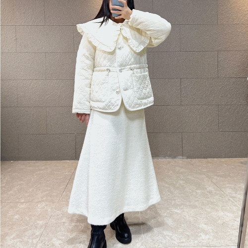 - 3온스 퀄팅 패딩 아이보리 핑크
