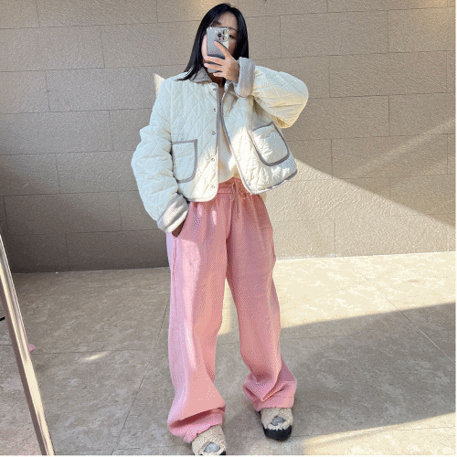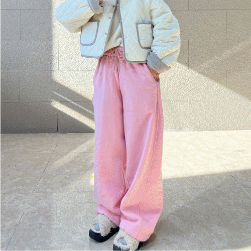 - 양 기모 조거 헤비 쭈리 와이드 팬츠 핑크 아이보리