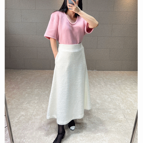 - 바깥기모 U넥 반팔 티셔츠 아이 핑크 브라운